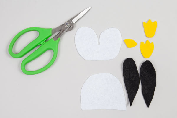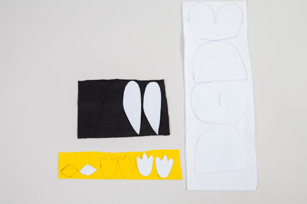 Für den kleinen Pinguin übertragt Ihr den Kopf und den Schnabel auf den Filz.