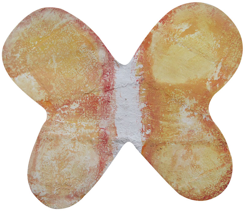 Tragt etwas gelbe und orangene Acrylfarbe mit einem Pinsel auf die Flügel auf. Mit einem trockenen Schwamm verreibt Ihr die Farben ineinander und erreicht damit einen hübschen Marmoriereffekt.