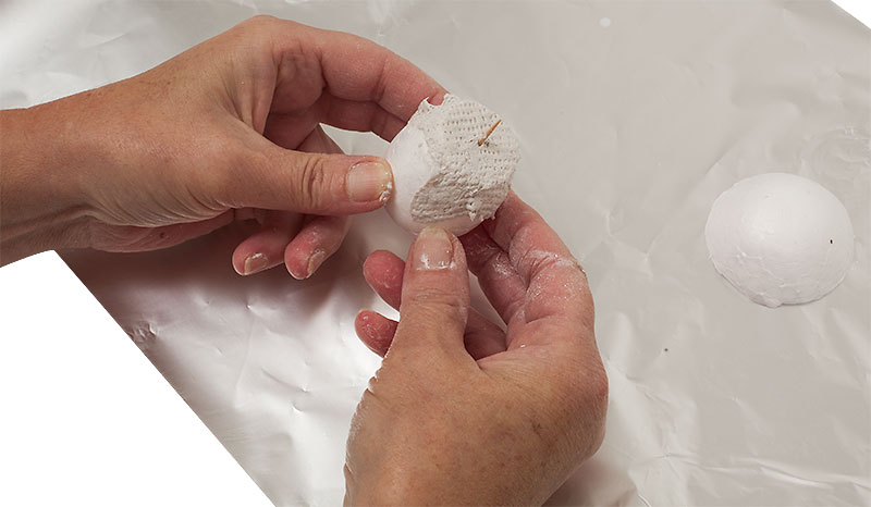 Wichtig: Achtet darauf, dass das schmale Ende vom Styropor-Ei nach oben zeigt.