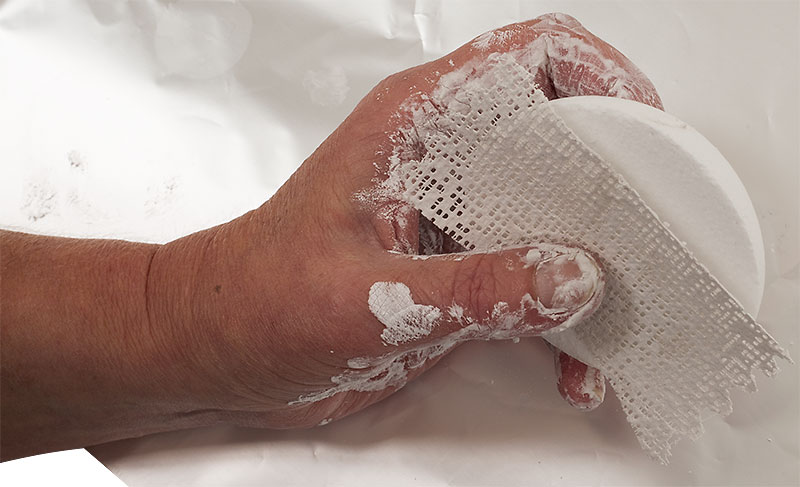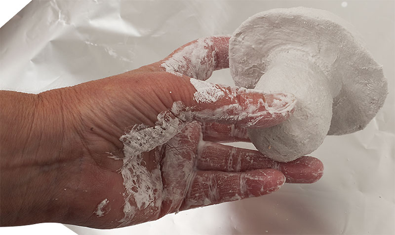 Den Hut für den Gipspilz könnt Ihr an der Kante etwas modellieren, indem Ihr etwas mehr Gipsbinde oder eine kleine Rolle aus Gips an den Rand modelliert.