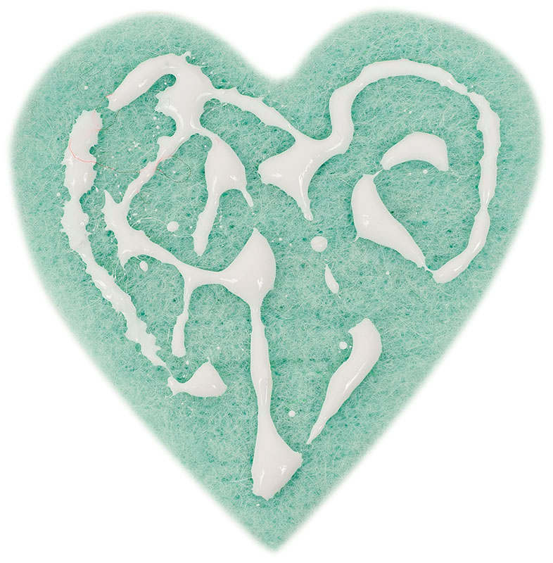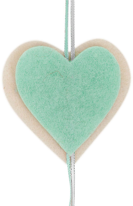 Das kleinere Herz aus Filzband lind auf der Rückseite mit Bastelkleber versehen.