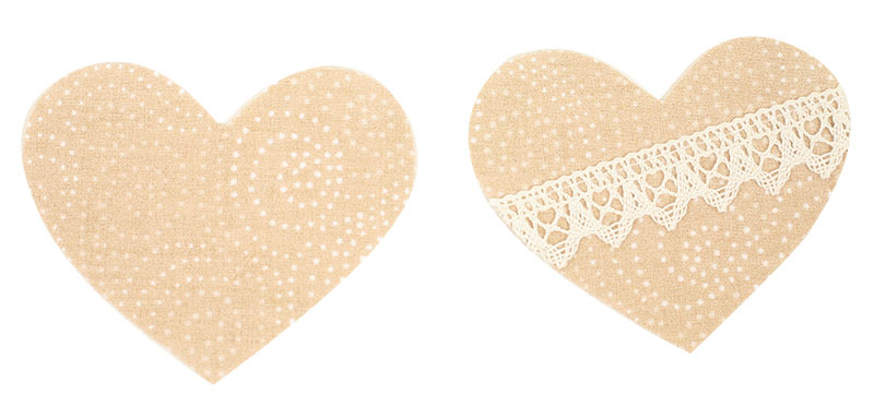 Natürlich gehören zu einem Geschenk für eine Hochzeit auch Herzen. Druckt die Vorlagen für die Herzen aus und übertragt sie auf den Stoff (pro Herz 2 x). Anschließend werden die Herzen ohne Nahtzugabe ausgeschnitten.
