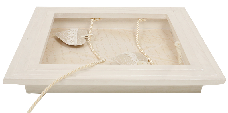 Ihr könnt den 3D-Bilderrahmen einfach weiß belassen oder ihn noch zusätzlich mit Perlmutfarbe weiß überstreichen. Der Rahmen erhält dadurch einen edlen, seidigen Schimmer, was natürlich besonders gut zum Anlass einer Hochzeit passt. Wer diesen Effekt nicht haben möchte, lässt diesen Schritt einfach aus.