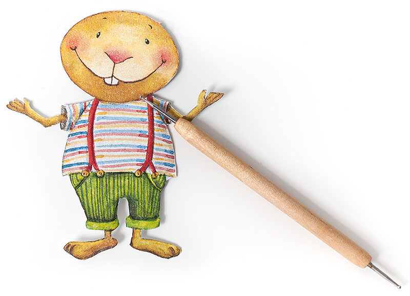 Im nächsten Schritt wird der Kopf mit den Ohren aufgeklebt, um dem Hasen noch plastischer wirken zu lassen.