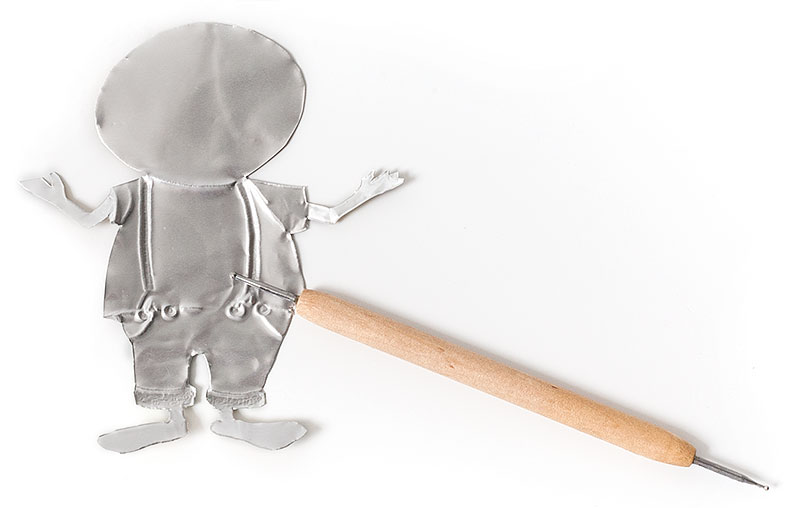 Die Kontur wird zunächst mit einem kleinen Prägestift auf der Vorderseite nachgezogen.