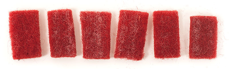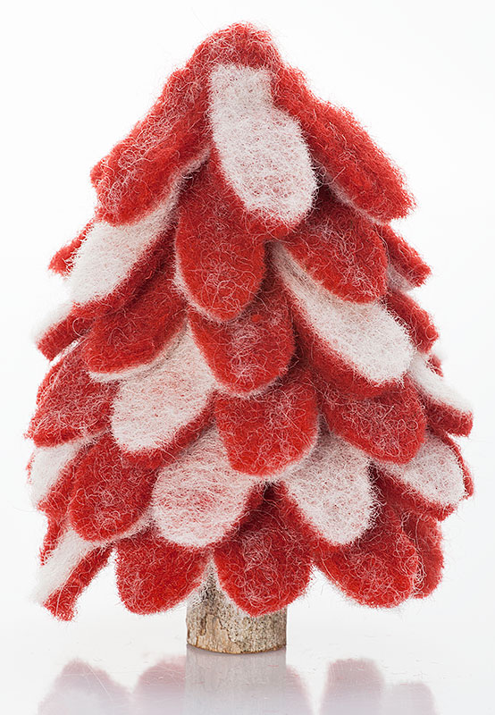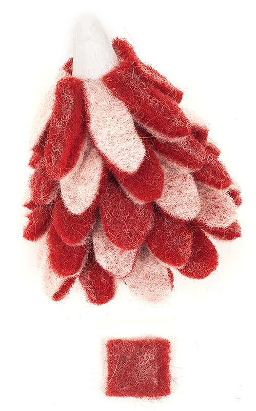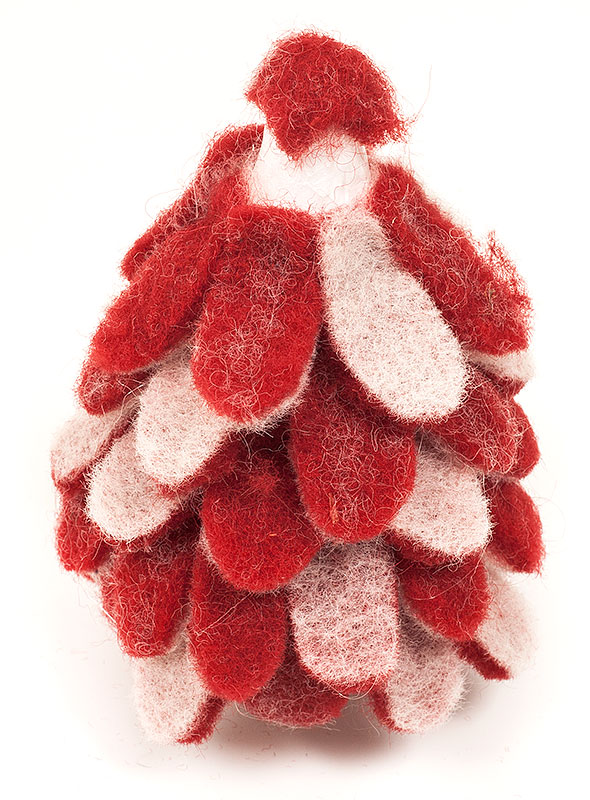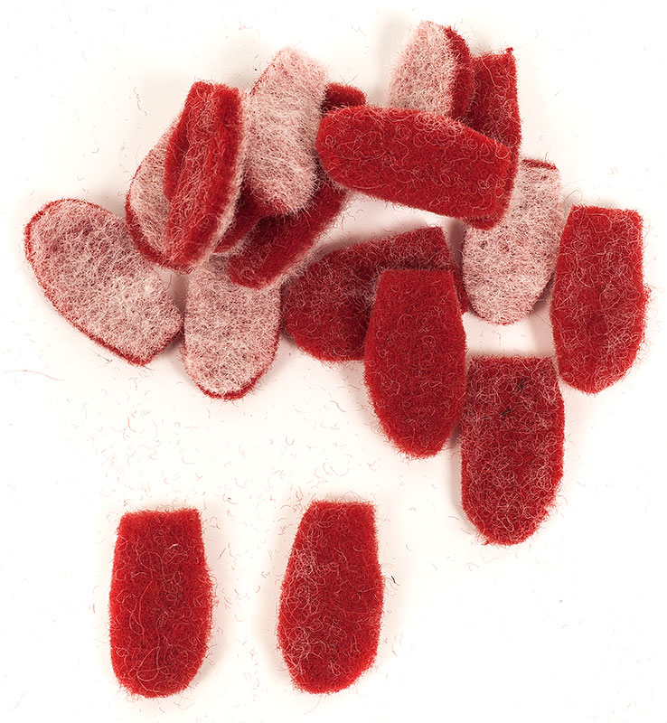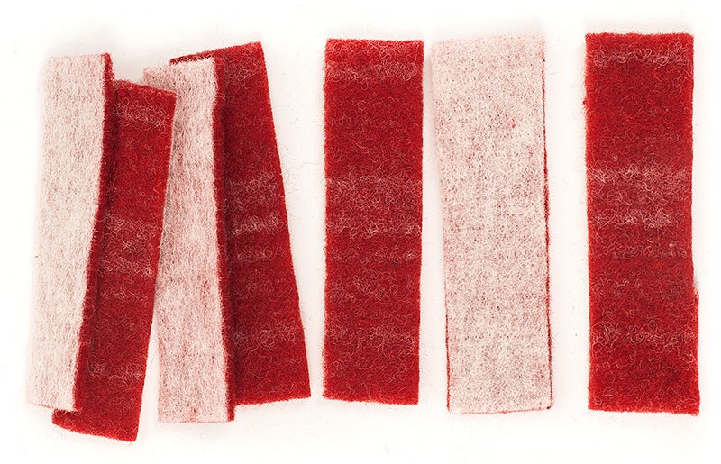 Schneidet vom rot-weißen Filzband einige Streifen von 4 cm Breite ab.