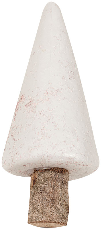 Als Erstes klebt Ihr einen Baumstamm mit Heißkleber von unten am Styropor-Kegel fest.