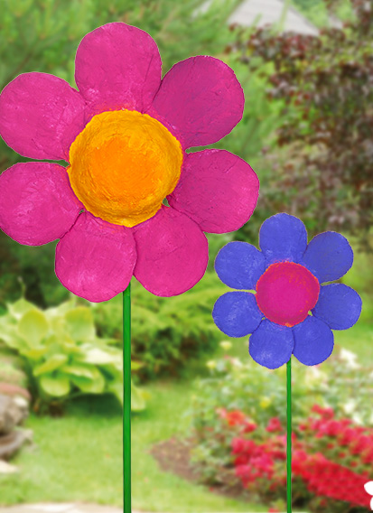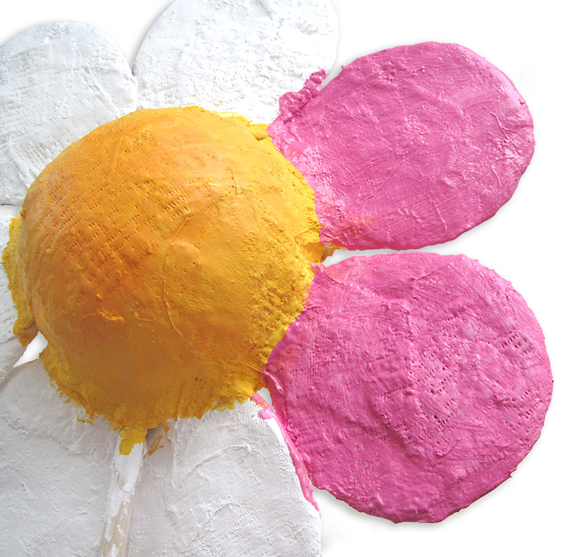 Zum Schluss könnt Ihr nach Euren eigenen Vorstellungen die Blume mit Acrylfarbe bemalen und der Kreativität freien Lauf lassen.