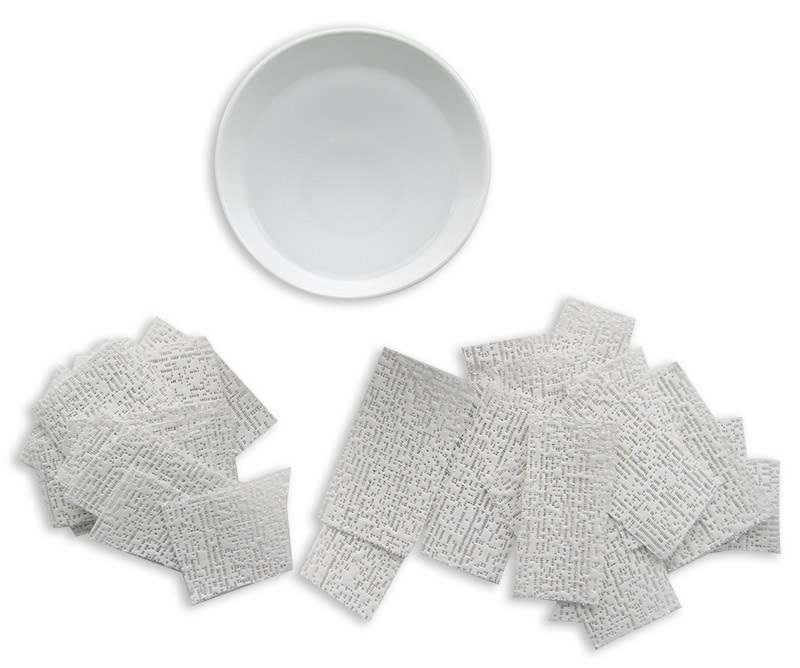 Weiterhin schneidet Ihr die Gipsbinde in verschieden große Stücke, und legt euch schon eine kleine Schüssel mit Wasser bereit.