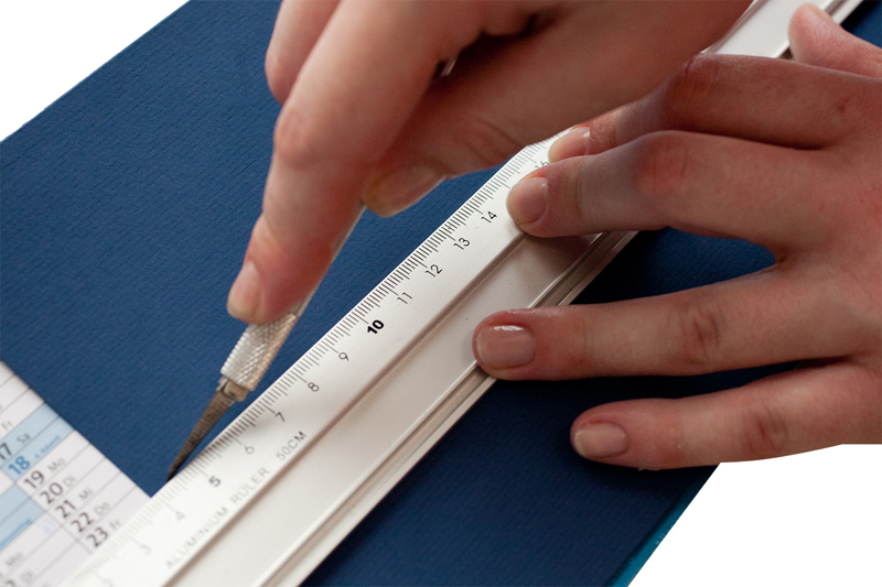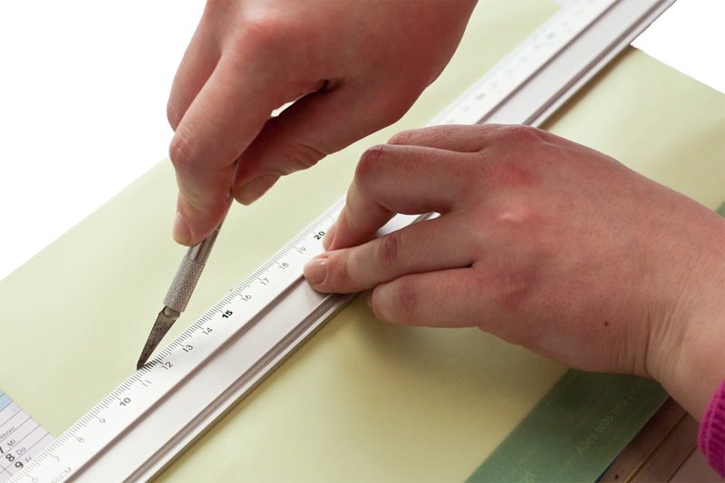 Am besten verwendet Ihr ein Präzisionsmesser und ein Alu-Lineal für den Zuschnitt.