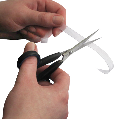 Anschließend wird auf der Rückseite des Transparentpapiers an zwei Seiten ein Streifen des Leimpunkte-Klebebandes angebracht.