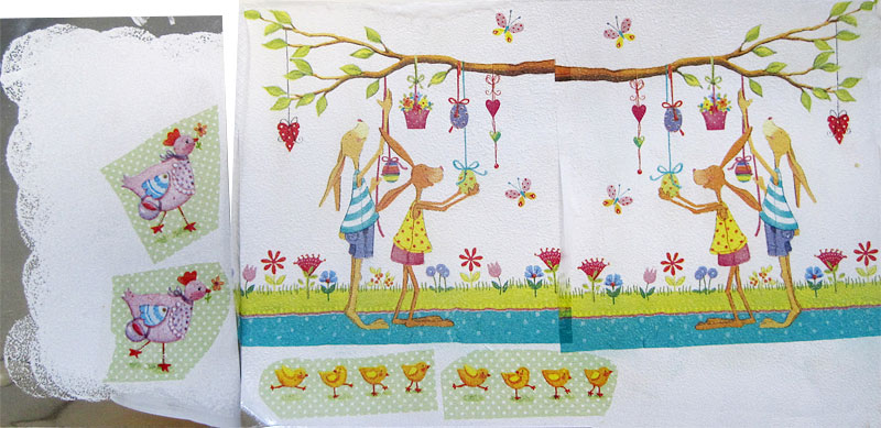 Vergesst nicht, jeweils auch die Rückseiten der Trennscheiben mit Serviettenmotiven zu bekleben!