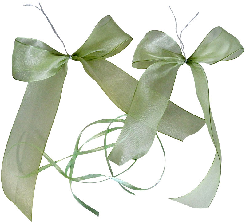 Bindet mit Draht aus dem hellgrünen Chiffonband hübsche Schleifen.