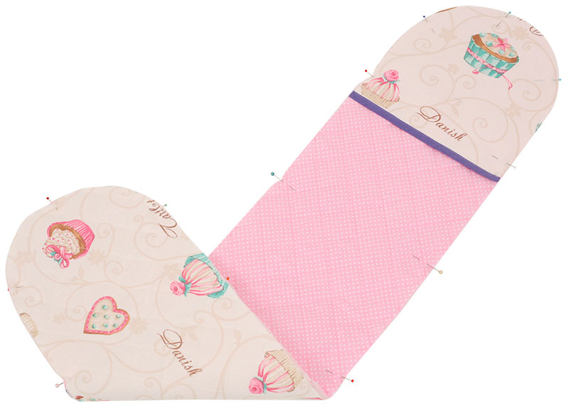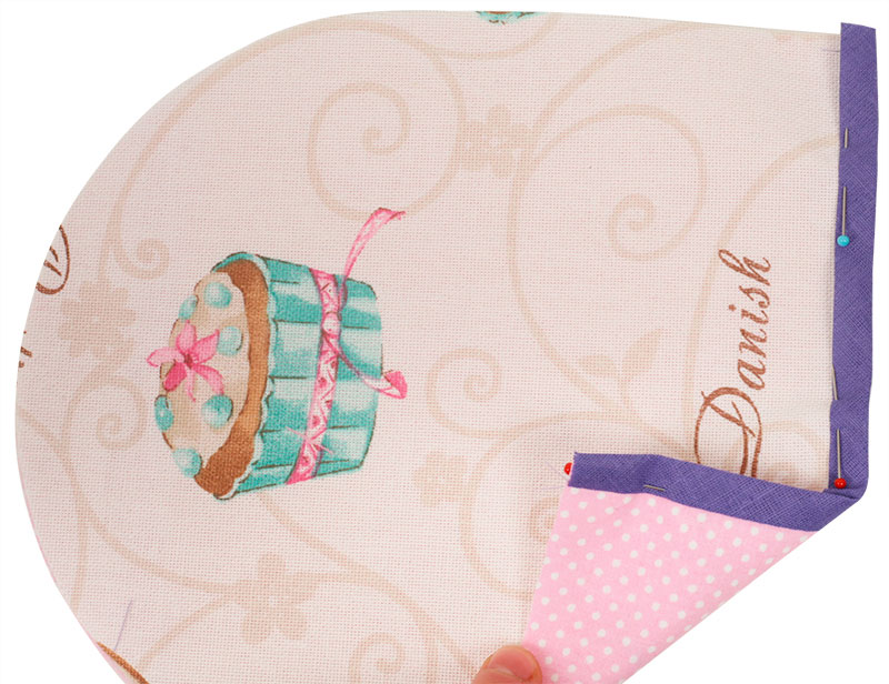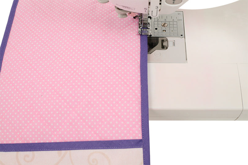 Jetzt steppt Ihr das Schrägband von der Muffins-Seite aus knappkantig um.