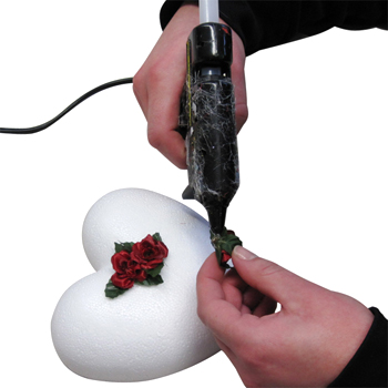 Die Rosen mit dem Heißkleber auf das Styroporherz kleben. Beim Aufkleben am Stück arbeiten und darauf achten, dass keine Lücken entstehen. Man kann auch eine Schlaufe auf der Rückseite befestigen um das Herz aufzuhängen.