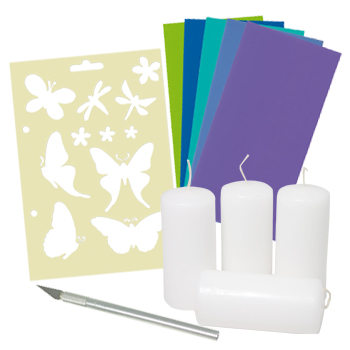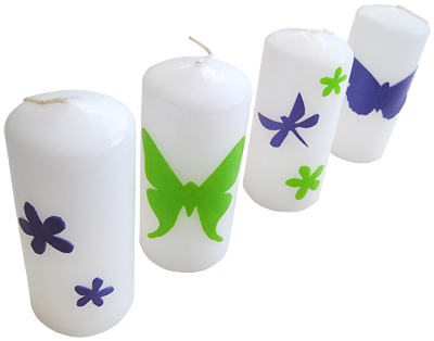 Mit einer Schablone und einfachen Kerzen lassen sich blitzschnell Schmetterlingskerzen für die letzten Grillabende draußen basteln.