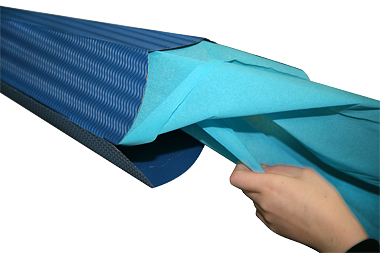 Zuerst faltet Ihr die Schultüte und steckt sie an den Laschen zusammen. Dann klebt Ihr um die Spitze weißes Krepp-Papier (nehmt dieses doppelt, damit die blaue Schultüte nicht durchscheint) und befestigt am oberen Teil türkises Krepp-Papier mit einer Heißklebepistole. Lasst dabei das Krepp-Papier ruhig etwas länger überstehen, denn es kann zum Schluss immer noch auf die ideale Länge gekürzt werden.