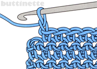 Am Anfang bzw. am Ende der Reihe in die erste bzw. letzte Masche der Vorreihe zwei feste Maschen häkeln.