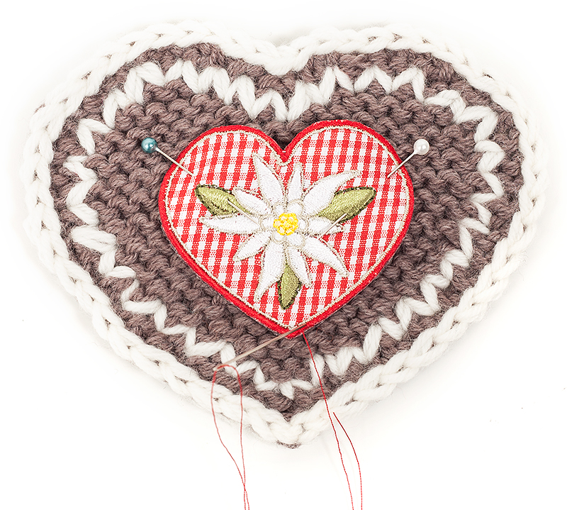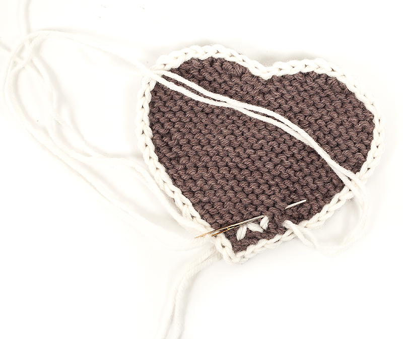 Das Herz wird mit doppeltem Garn gearbeitet.