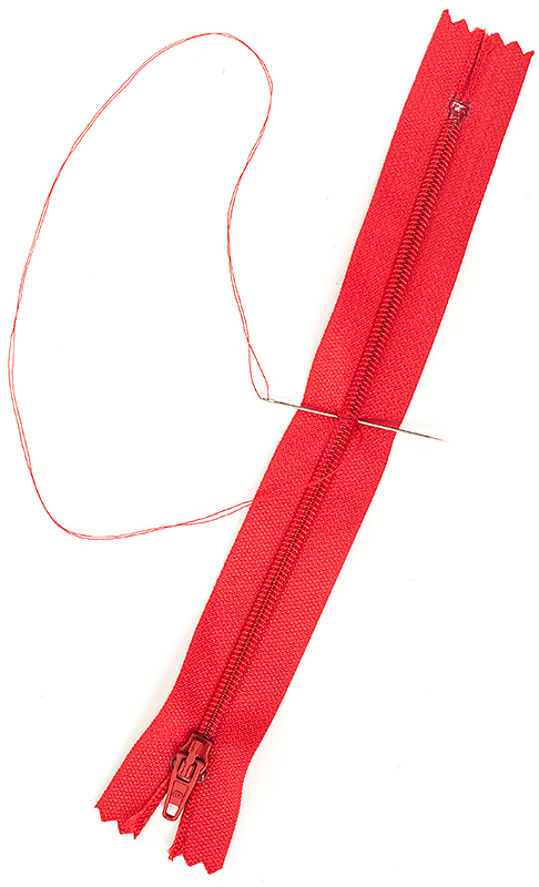 Jetzt wird der Reißverschluss zum Einnähen vorbereitet. Dafür 9 cm abmessen und mit einem farblich passenden Garn abnähen, wie auf dem Bild zu sehen.