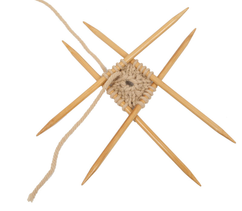 Dann arbeitet Ihr mit den Musterrunden im Kreuzmuster weiter. Strickt 17 Runden hoch.