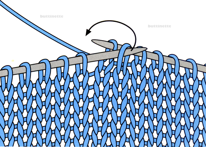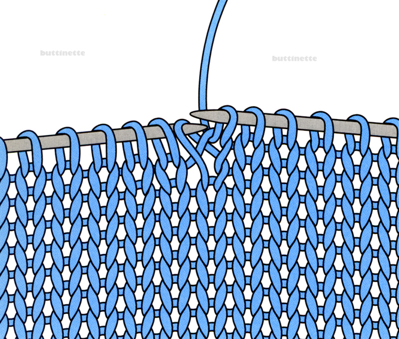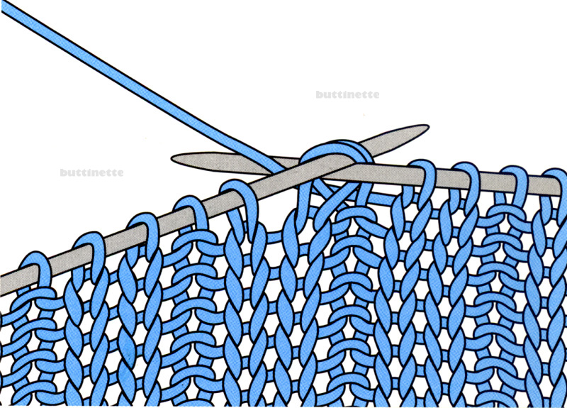 Aus 1 Masche insgesamt 2 Maschen herausstricken; und zwar links einer Masche: 1 Masche rechts stricken, danach mit der linken Nadel die darunterliegende Schlinge der zuletzt gestrickten Masche von hingen nach vorn auffassen und rechts abstricken.