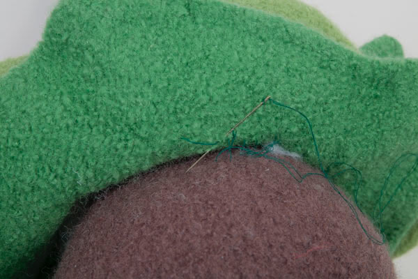 Nach dem Trocknen entfernt Ihr die Watte aus dem Stamm und füllt das Granulat ein. Den restlichen Stamm füllt Ihr wieder mit Füllwatte. Schließt die Oberkante mit einigen Stichen.
