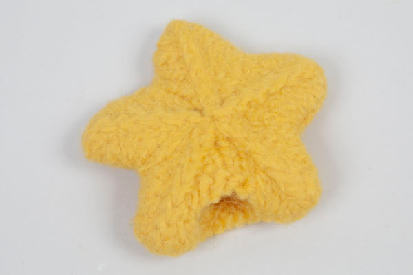Den Stern filzt Ihr, genauso wie vorher beschrieben, zieht auch diesen anschließend gleich in Form.