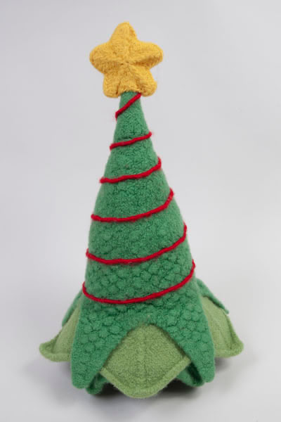 Auf die gleiche Weise filzt Ihr die Baumkrone. Auch diese zieht Ihr nach dem Waschen sofort kräftig in Form und stopft diese zum Trocknen mit Füllwatte aus.