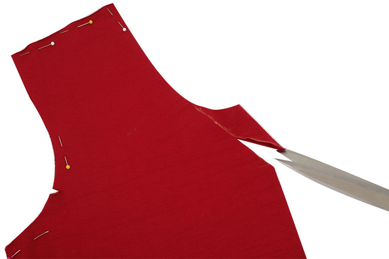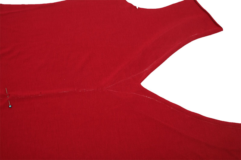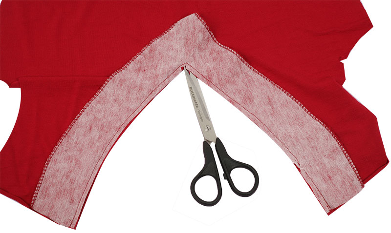 Schneidet dann nach Eurer markierten Linie den V-Ausschnitt aus.