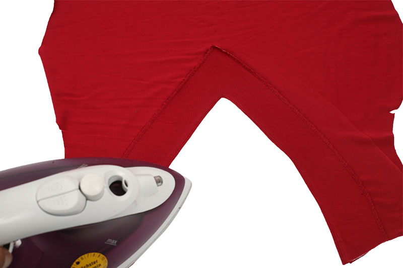 Nun wird der Beleg nach innen gebügelt. Legt dann das Vorderteil zur Seite.