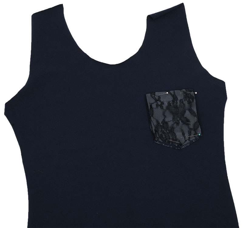Zusätzlich schneidet Ihr die Brusttasche nach dem Schnittteil 1 x aus dem Blusenstoff und 1 x aus Spitze zuschneiden (Nahtzugabe oben 3 cm, seitlich und unten 1 cm sind schon enthalten).