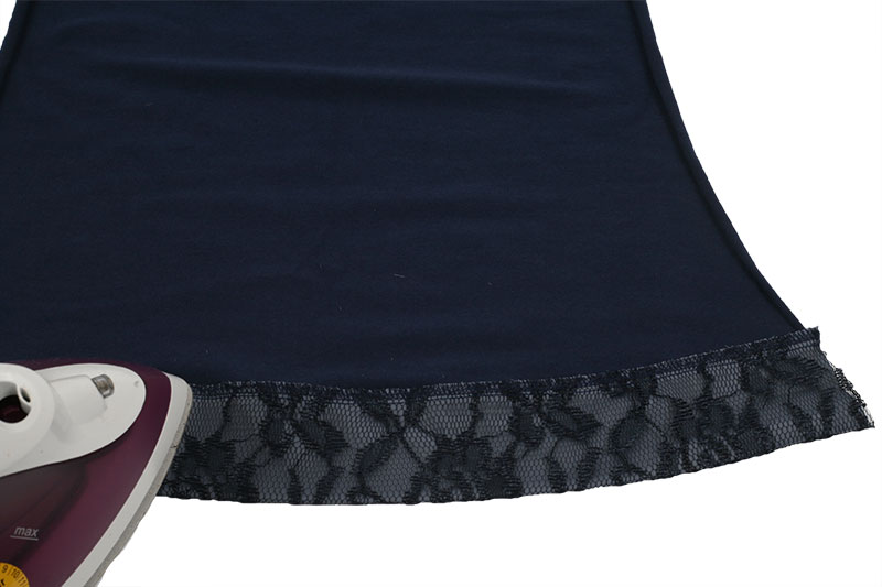 Anschließend bügelt Ihr die Nahtzugabe nach oben zum Jersey-Stoff. Nun könnt Ihr das T-Shirt nach der burda Anleitung fertig nähen.