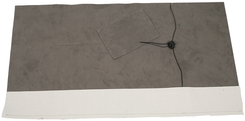 Danach legt Ihr die Schablone für die Taschenposition auf die rechte Stoffseite des große Rechtecks. Oben und unten an den langen Kanten, sowie seitlich links an der kurzen Seite bündig mit der Schnittkante. Markiert Euch die Taschenposition mit Nadeln auf dem Stoff oder schneidet die Tasche aus der Papiervorlage aus und zeichnet Euch die Umrisse dann auf dem Stoff an.
