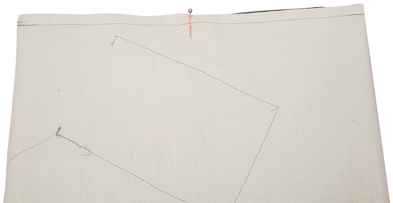 Von der im Schritt 14 gesteppten Naht zeichnet Ihr 3 cm nach oben eine weitere Stepplinie an.