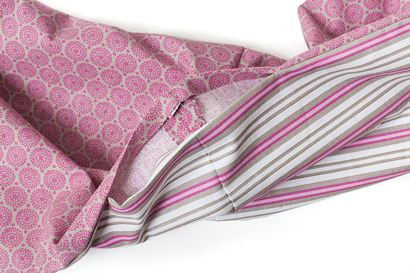 Die noch offene Wendeöffnung wird jeweils 1 cm nach innen gebügelt.
