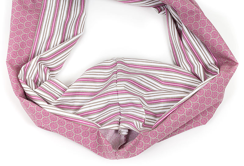 Bevor aus dem Schal ein Loop werden kann, dreht Ihr den Stoff auf rechts.