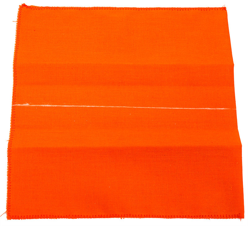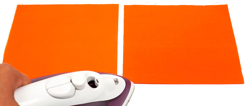 Lasst nun die beiden vorhin umgebügelten Bruchkanten an dieser Markierung aneinander stoßen und bügelt die so entstandene Falte fest. Dies ist nun die rechte Taschenseite. Genauso arbeitet Ihr die zweite Tasche.