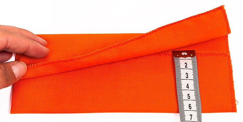 Danach schlagt Ihr die offene Kante 1 cm nach innen um.
