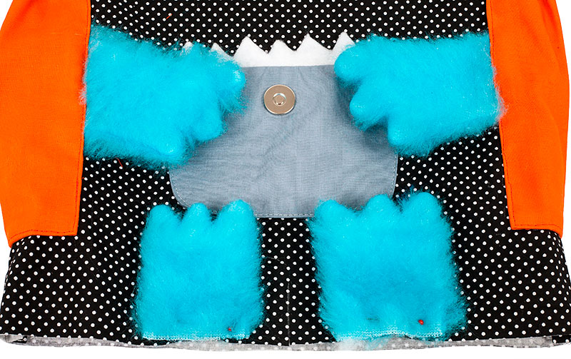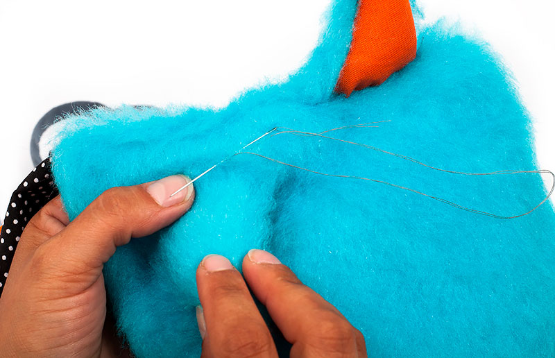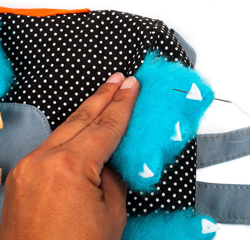 Zum Schluss näht Ihr noch die Krallen mit wenigen Stichen von Hand auf Finger und Zehen des Monsterrucksacks.