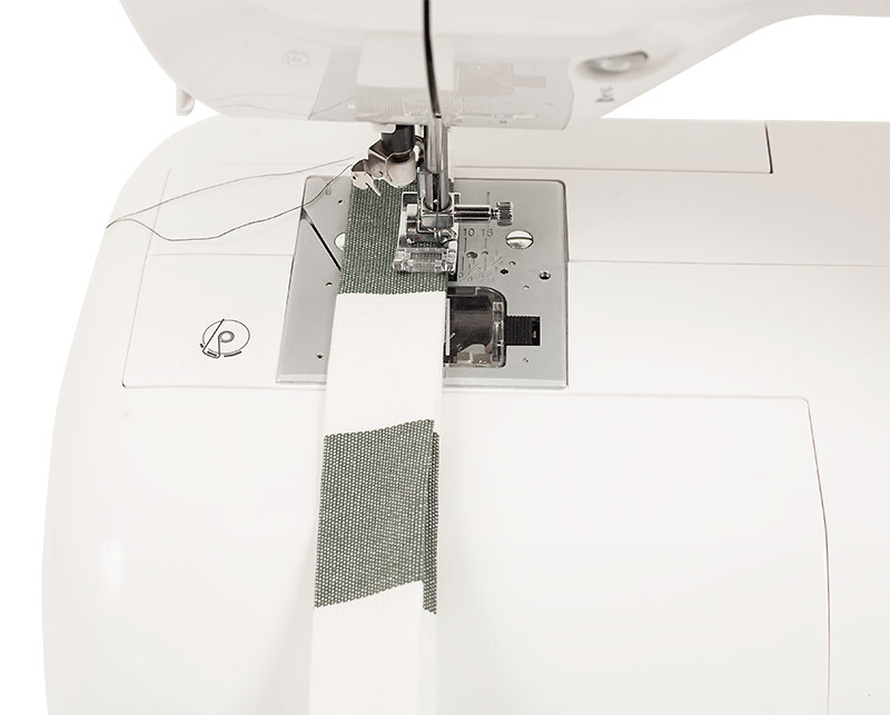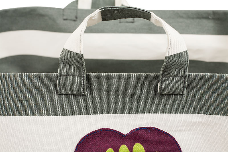 Dann steppt Ihr die Griffe für den Wäschekorb knappkantig ab.