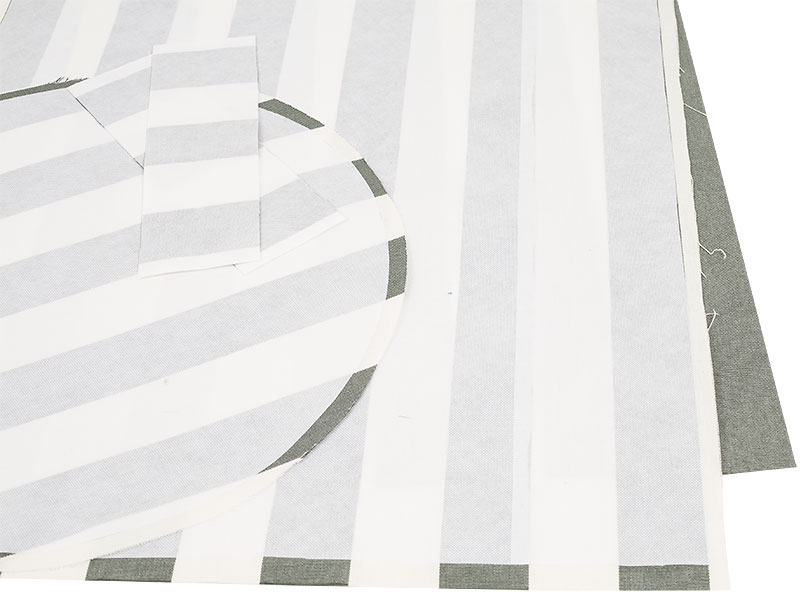Als erstes werden alle Schnittteile für den Wäschekorb mit der Einlage fixiert. Lasst beim Kreis und dem großen Rechteck die Nahtzugabe von 1 cm unfixiert, weil die Nähte sonst zu dick werden.