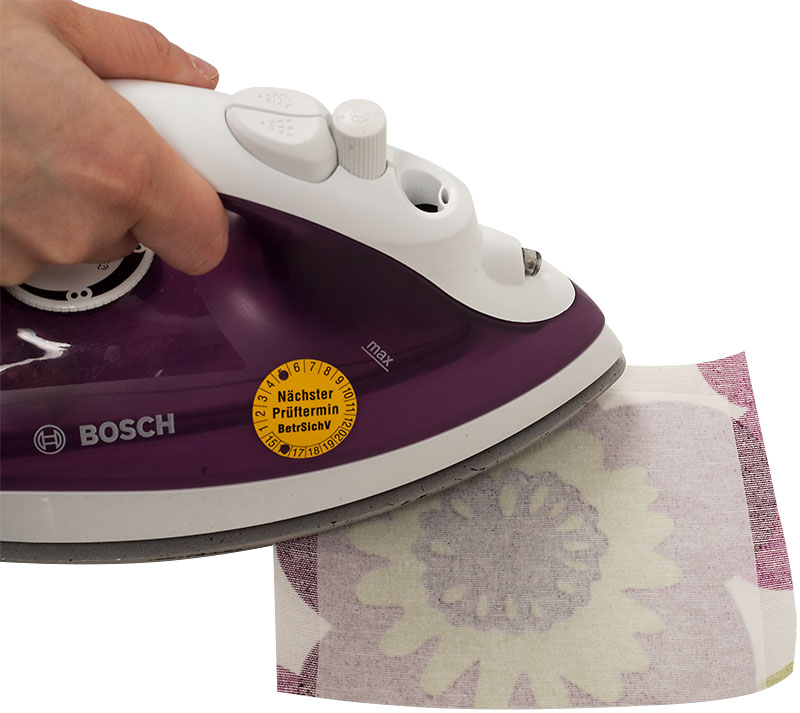Jetzt wird der Korb durch die Öffnung gewendet und der Rand glatt gebügelt. An der Öffnung bügelt Ihr die Nahtzugabe ein und steppt sie mit der Maschine zu.